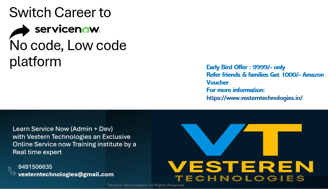 At Vestern Technologies, we offer exclusive ServiceNow online training led by real-time experts to enhance your skills and career opportunities with Good pays